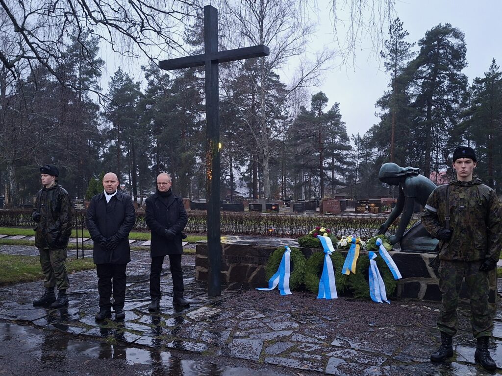 Yhdistyksen pj Mikael Bäckman ja hallituksen jäsen Joakim Wilkman suorittivat itsenäisyyspäivänä 5 yhdistyksen yhteisen seppeleen lasku Tammisaaren udden hautausmaan sankarihaudalla.