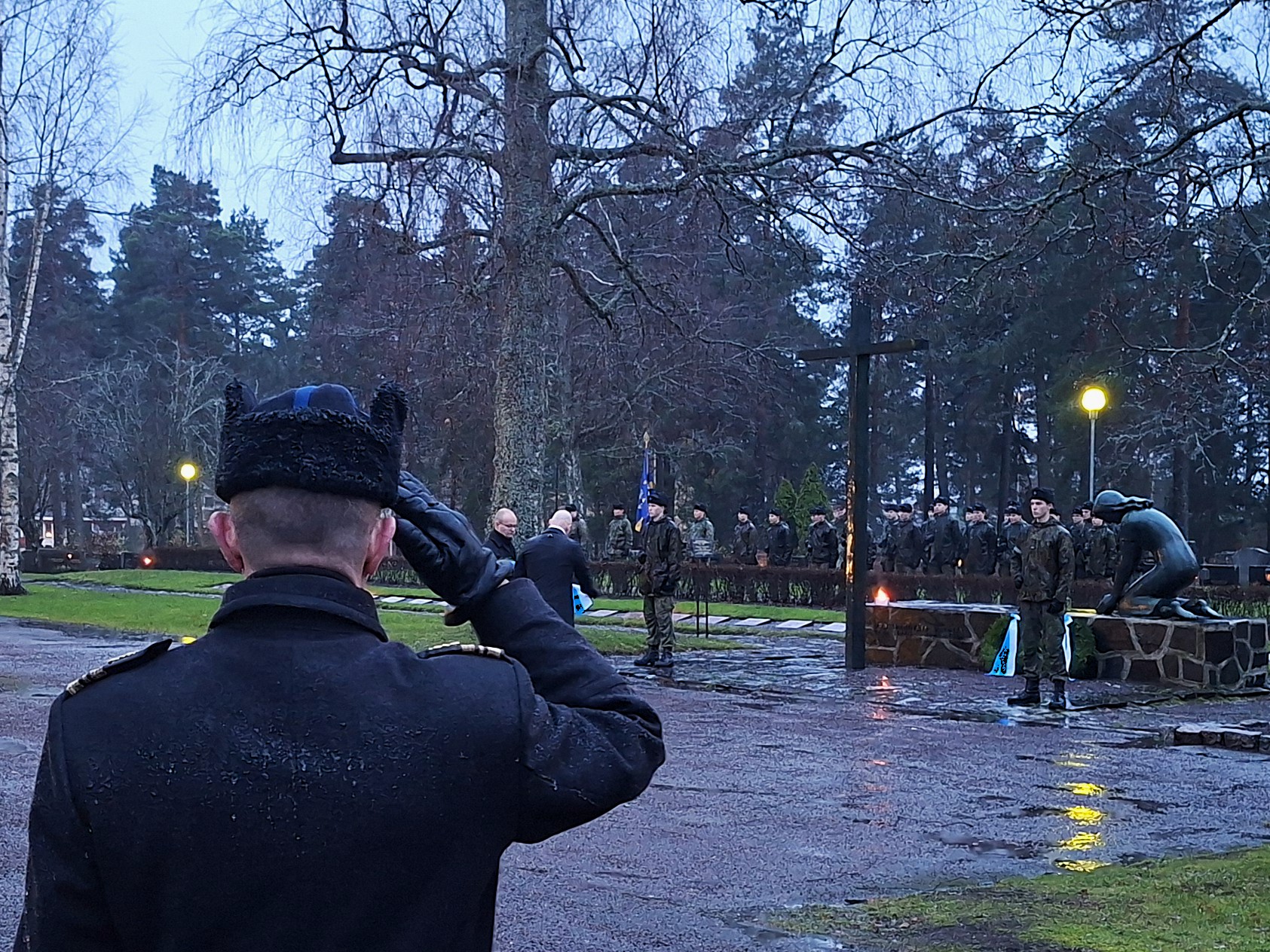 Yhdistyksen pj Mikael Bäckman ja hallituksen jäsen Joakim Wilkman suorittivat itsenäisyyspäivänä 5 yhdistyksen yhteisen seppeleen lasku Tammisaaren udden hautausmaan sankarihaudalla.